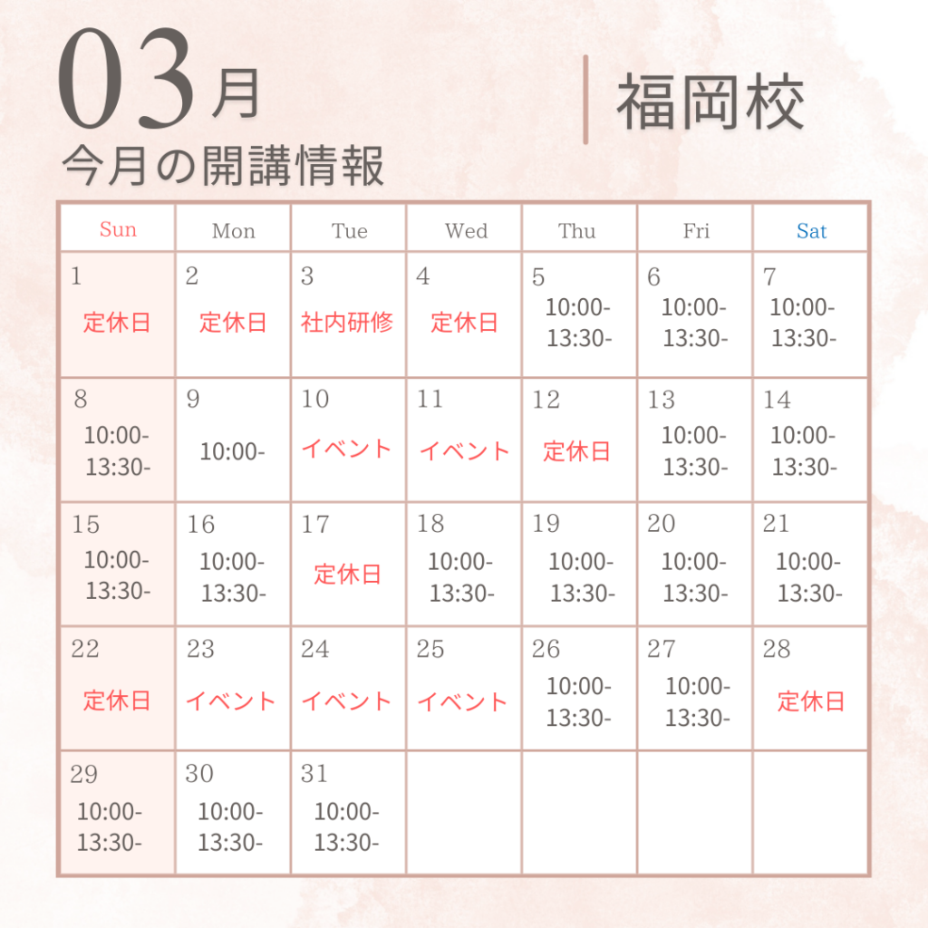 当教室は大阪、東京恵比寿、福岡校で開講しています。
